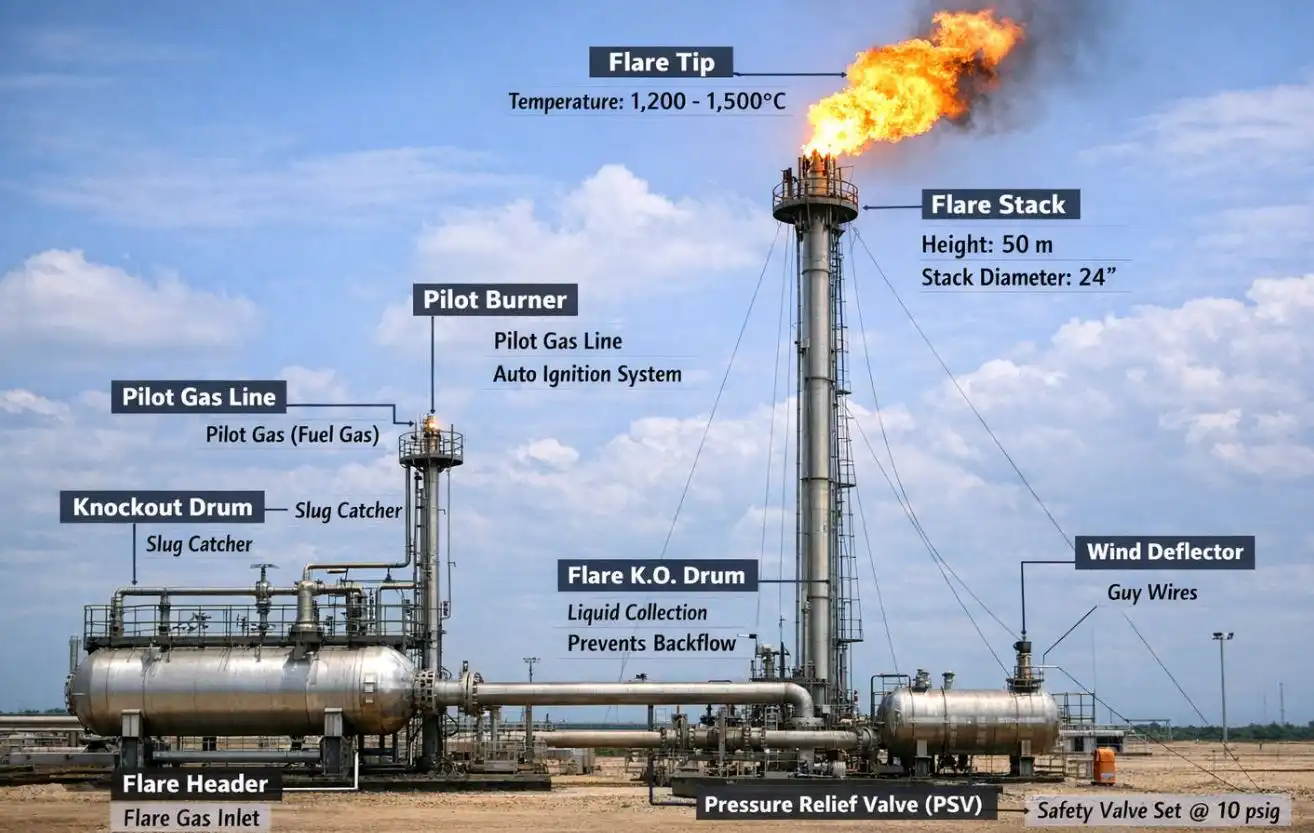Flare system upgrade carried out at Oil and Natural Gas Corporation (ONGC) Mehsana Asset to enhance overall relief handling capacity, reduce header backpressure, and improve smokeless flaring performance. The upgrade included revalidation of relief loads, hydraulic assessment of the flare network, flare tip capacity enhancement, and instrumentation improvements to ensure higher operational safety, reliability, and environmental compliance.